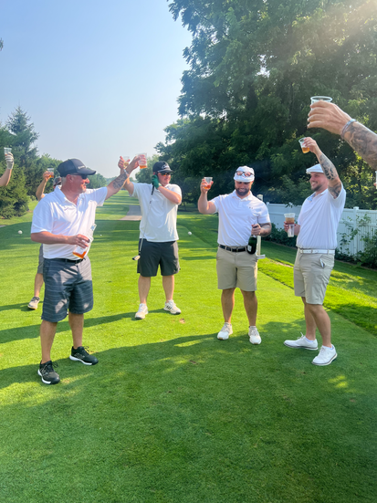Heading to the tee box the boys popped a bottle of champagne and ripped a shot of beam as new Grandpa Ricotta led a toast to Johnny Raina, congratulating them on the birth of their baby girl Kay!